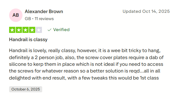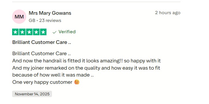 These are real reviews from real customers, shared on our Trustpilot page. Whether it’s peace of mind on the stairs, a safer hallway, or just a handrail that actually looks good in your home, people are telling us we’re getting it right.